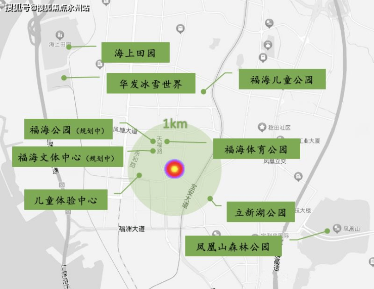 约1km范围内近享福海体育公园、立新湖公园、儿童体验中心,以及福海公园(规划中)、福海文体中心(规划中),约20分钟车程内通往世界级文旅项目——华发冰雪世界(在建)、华润金蚝小镇(规划中)、国家4A级景区——海上田园及宝安第一山——凤凰山。