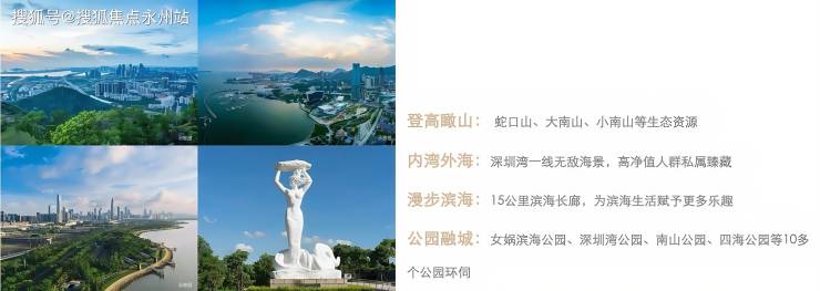 半岛生态格局:接驳 15 公里滨海长廊,步行可达深圳湾公园,小南山公园提供山地休闲体验,形成"山海城湾"四维景观体系。
