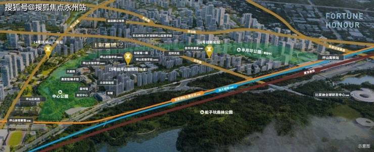 家门口三地铁环绕:14/16/19号线(在建),坪山广场站、新和站、坪山剧院站(在建)三站环绕,快线6站到大运、13站直达岗厦北,便捷换乘畅达各区核心