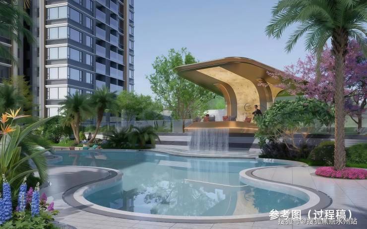 社区配置约500㎡泳池、约400米风雨连廊、约550米环形跑道、约2200㎡儿童乐园及约500㎡多功能运动场,实现出户即享的度假式景观体验。
