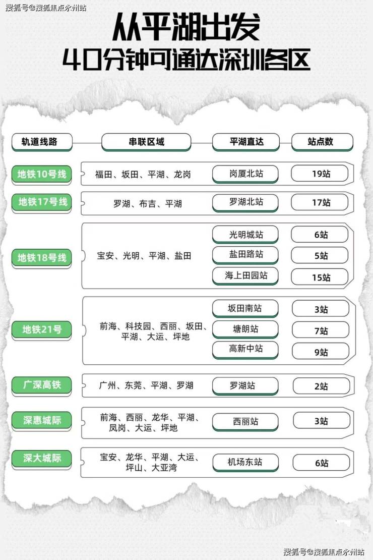深圳布局了14个综合交通枢纽,平湖站升级为深圳的8个高铁枢纽之一,“1高铁、2城际、3地铁、4快速路”的配置,让平湖枢纽跻身为继福田、罗湖口岸、深圳北站之后的深圳第四大交通枢纽中心(平湖白泥坑还规划有深大城际线路)