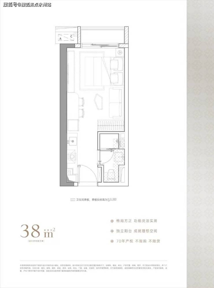 建面约38㎡:麻雀虽小五脏俱全,带阳台通燃气,卫浴干湿分离,房间更防潮,总价1字头,以最低门槛上车福田核心区,预估未来租金水平可达5500元/月。