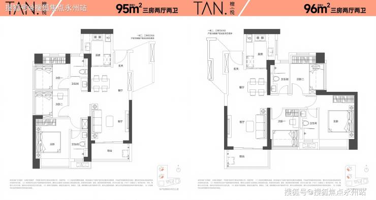 95-96㎡三房:总价约 420 万起(单价4.4万/㎡,东南/西南朝向)