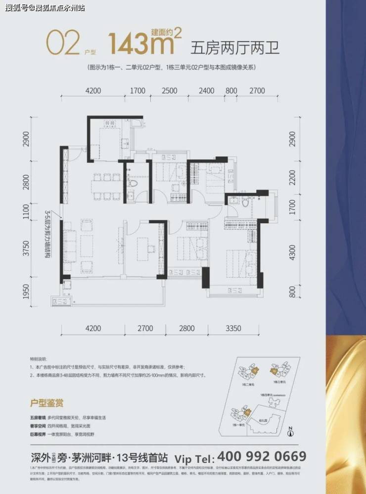 建面约143㎡五房两厅两卫:客餐通厅 尽显大宅显赫气派,五房格局 完满三世同堂幸福生活