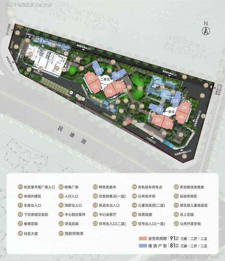 核心亮点:高使用率设计(优于周边竞品),L 型厨房动线合理,客餐厅一体化南北通透,主卧带独立卫浴,满足三口之家需求19。