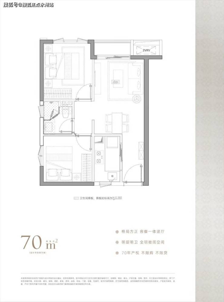 约70㎡两房两厅一卫 总价:285-345万 单价4万起