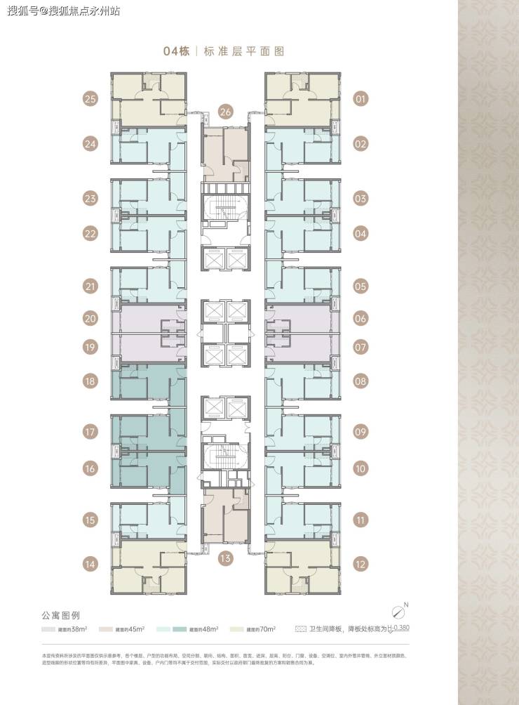 公寓:38㎡单间,45-48㎡小两房,70㎡大两房。