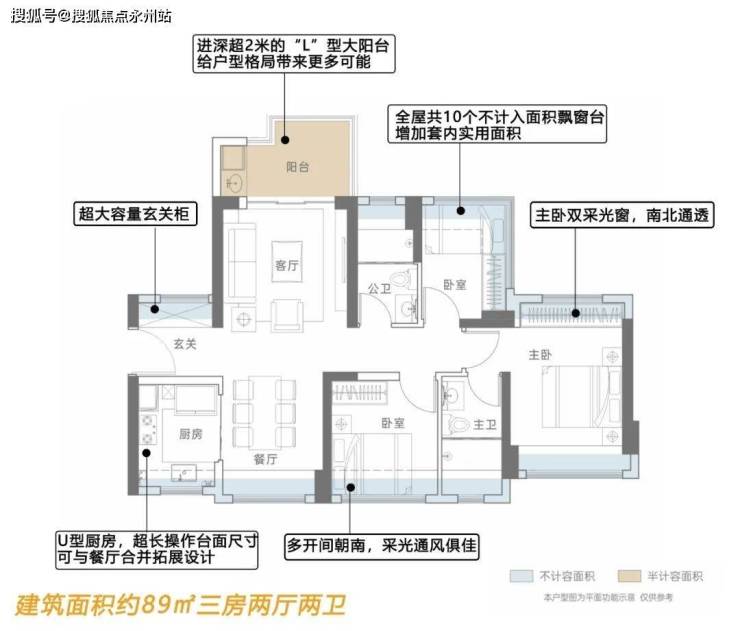 89㎡的3房2厅2卫,折后总价221-243万/套,单价2.48-2.73万/㎡。