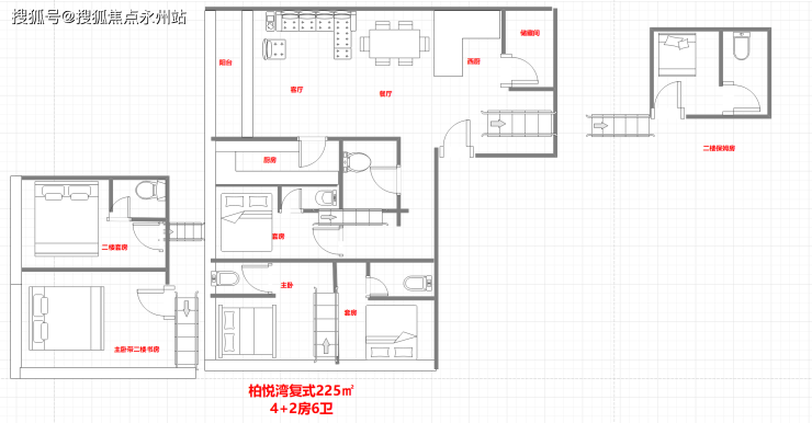 225-252㎡4+2房6卫:东北深圳湾+城景,西北前海湾+城景,东南深圳湾+大小南山,西南前海湾+大小南山