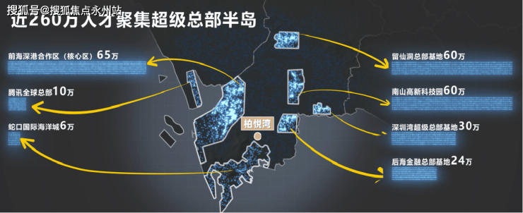 【超级总部半岛之核——超百万人才的中央智区】柏悦湾位于由深圳湾、蛇口湾、前海湾围成的南山半岛,也是“超豪半岛”;南山半岛串联7大总部基地,吸引大批诸如腾讯、大疆、阿里巴巴等行业龙头企业,以及大批总部企业入驻,未来将吸引260万人才聚集
