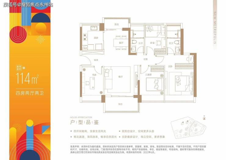 114平4房2厅2卫:南北通错厅设计,使用率77.66%(不包含赠送面积)