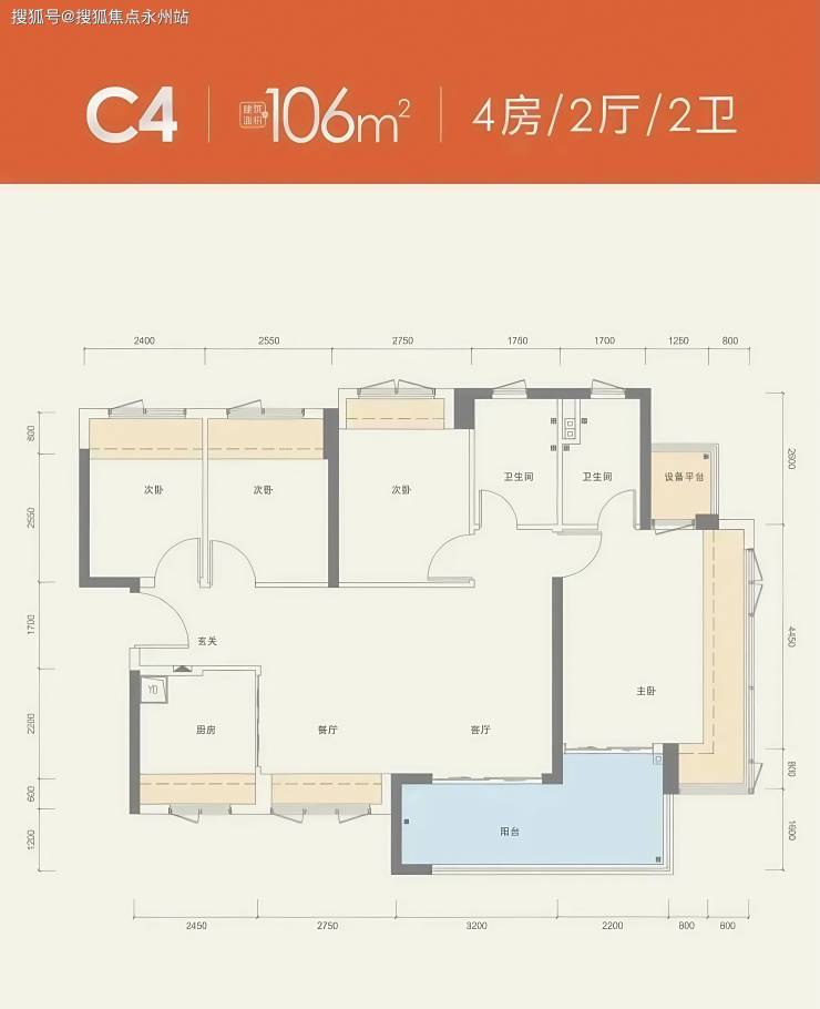建面约106㎡大四房户型使用率提升至103%,更是将改善需求做到极致。三个次卧均赠送进深约0.8米观景飘窗,主卧赠送2个进深约0.8米的飘窗,L型飘窗设计,加上约2㎡的设备平台、约5.4米超大观景阳台贯通客厅与主卧,“双阳台+双飘窗”让室内外景观浑然天成,形成真正的无界景观面。