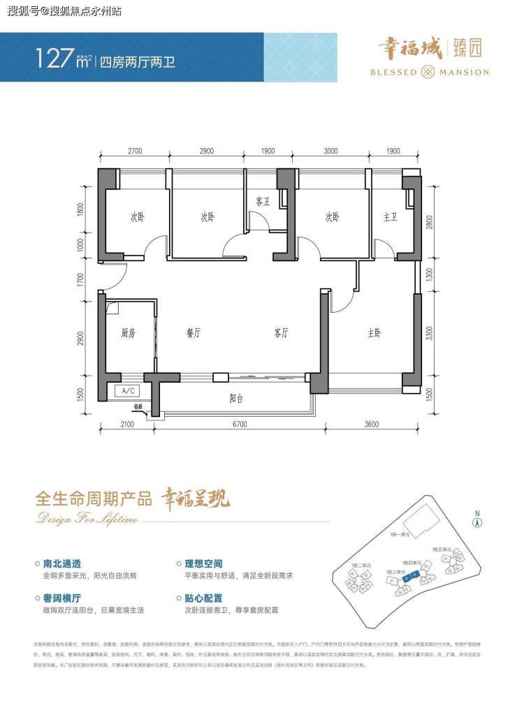 127㎡四房两卫:折后总价800-843万,单价约6.3万-6.64万/㎡。