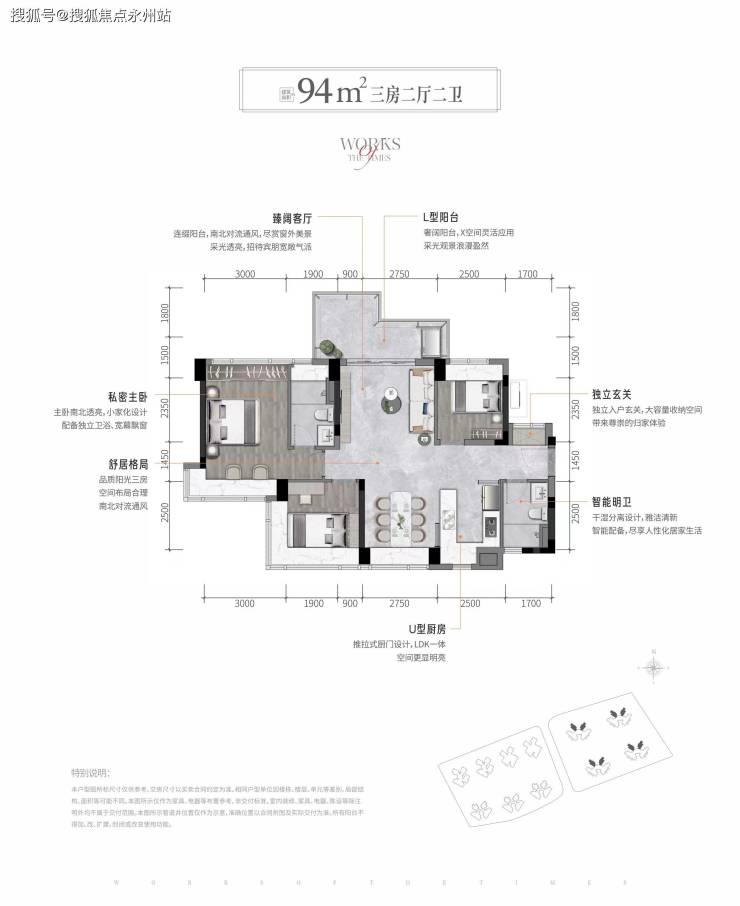卓越星奕府推售产品为建筑面积约85-110平3房-4房户型。
