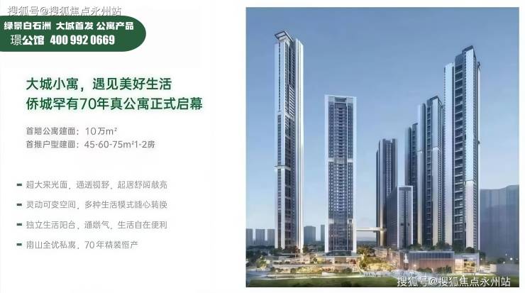 绿景白石洲·璟公馆推出45-60-75㎡小面积公寓产品,总价230万起,单价5.1万/㎡起,送精装,同时样板房已开放。