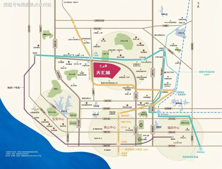 地铁13号线贯穿深圳南北,串联深圳湾,南山、科技园、西丽,无缝连接南山核心区域,两条地铁线路,有效将南山科技园的高新人才以及福田中心区高净值人群导入到光明。