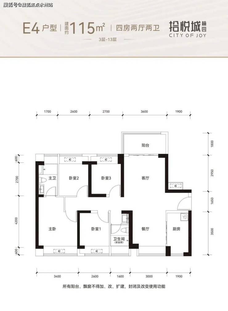 115㎡的4房2厅2卫,设计的竖厅南北通透格局,客厅3.6米开间,目前仅E座05户型有