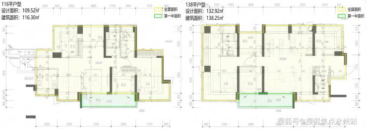 116-138㎡四房两卫:改善型户型,空间开阔,布局合理,多开间朝南,配套独立玄关、观景阳台,可满足多人口家庭居住,兼具私密性与舒适性。