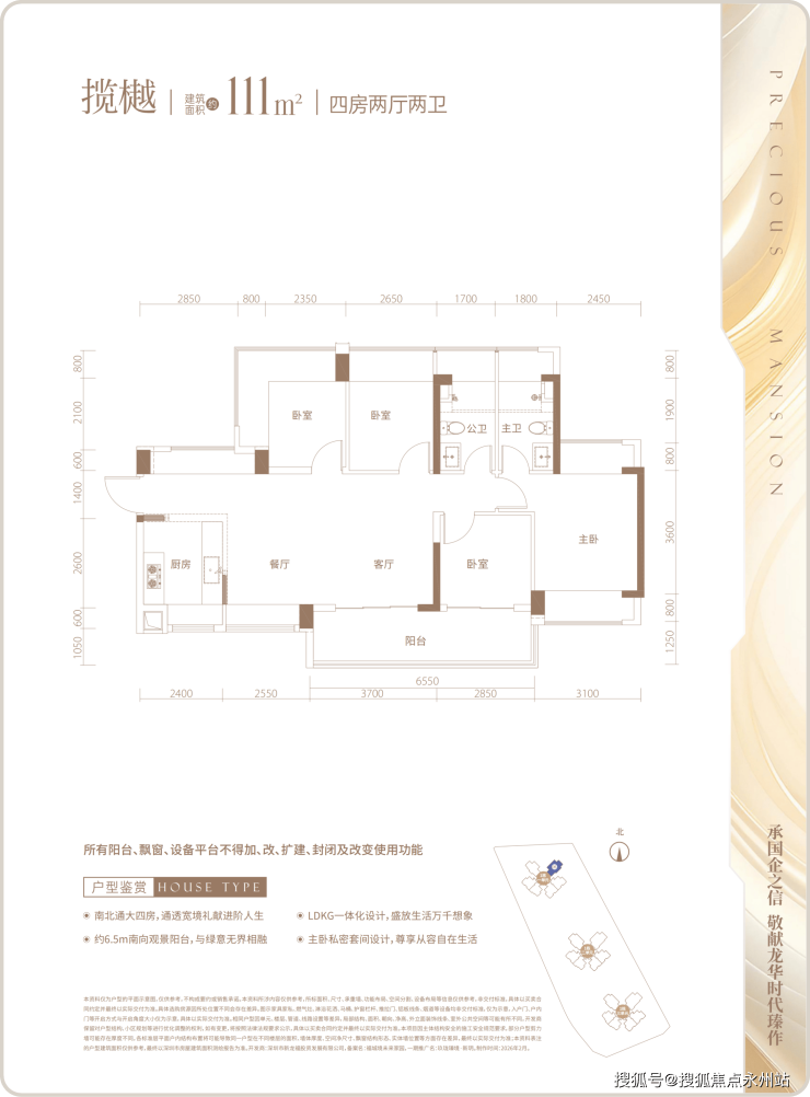 111㎡四房两卫,阔绰横厅布局,可满足多人口家庭的居住需求,预留充足的储物与活动空间,适配全周期家庭成长需求。