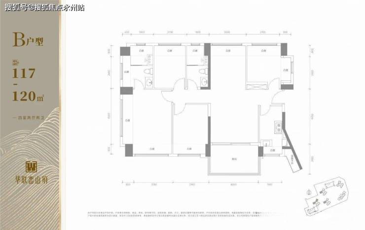 建面约117-120㎡ 奢适四房:多代同堂,各属天地,纵享天伦,南北通透 南向三开间 阳光肆意游走,约270°主卧景观 静享私属谧境。