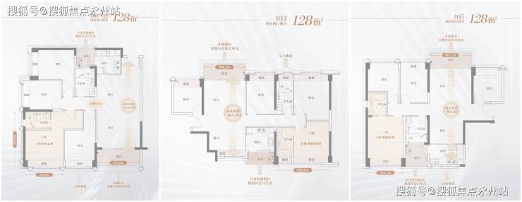 天宸128㎡户型图,双卫浴、双阳台设计,主卧大套房,空间开阔。