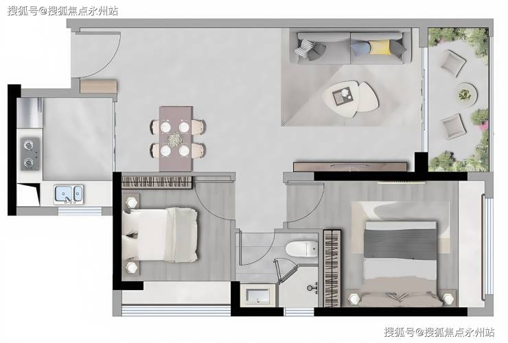 86-88㎡三房两厅一卫(东北/西南朝向):86㎡户型三开间朝南,主卧270°观景飘窗;88㎡户型双阳台设计,生活阳台可放置洗衣机等设备。