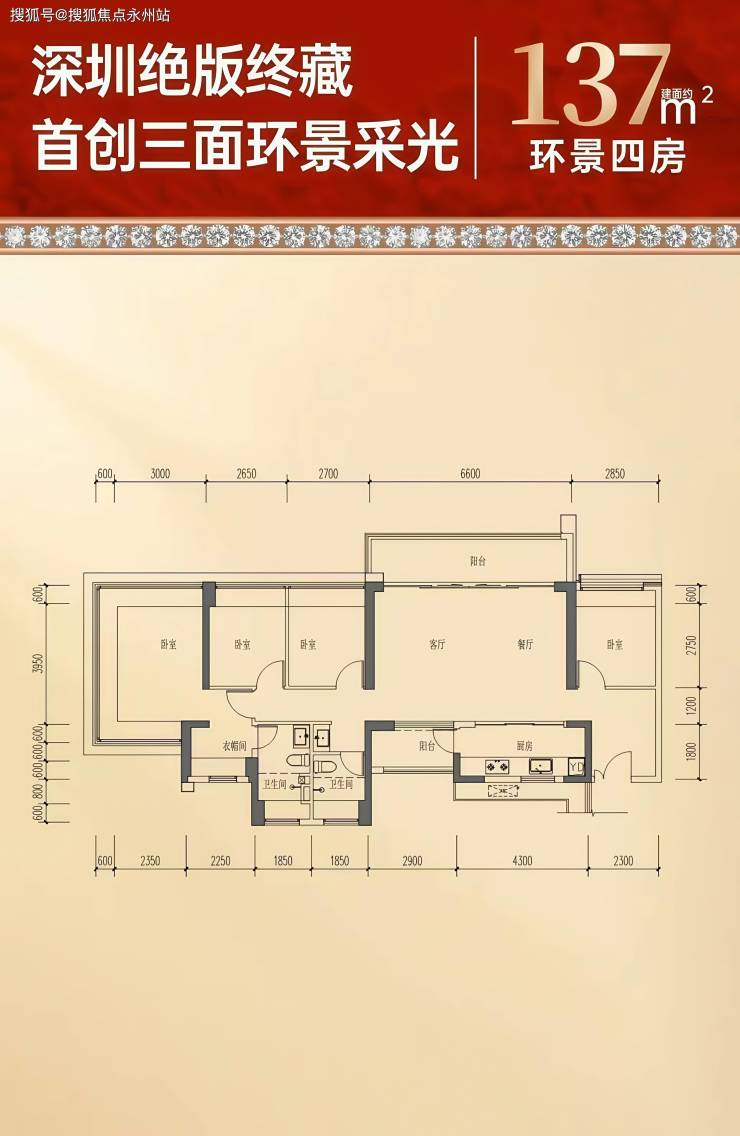 137㎡四房两卫,单价约5.2-5.5万/㎡,总价约711-748万。