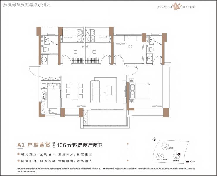 106㎡四房:285-312 万(折后单价 2.69-2.94 万 /㎡)