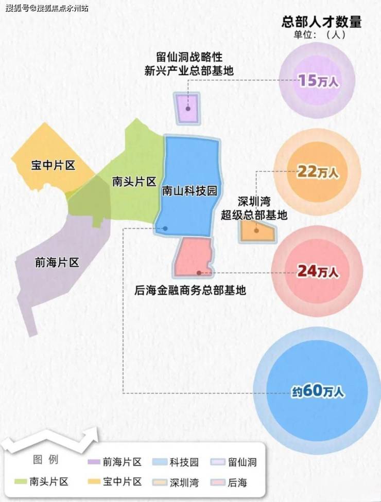 前海深港合作区(西南向约4km):定位国家战略性门户枢纽,未来将打造成世界级城市新中心,规划就业人口约65万人,居住人口15万人。