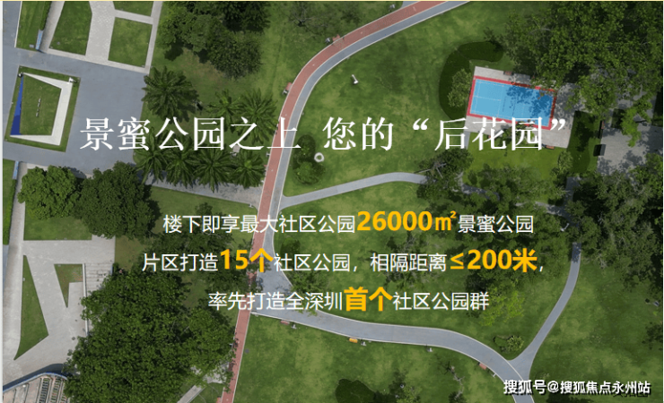 双园林景观:楼下即是占地26,000㎡的景蜜公园,是景田片区最大的社区公园 项目自身还配备了休闲绿地广场,形成"2.6万㎡景蜜公园+休闲绿地广场"的双园林配置。