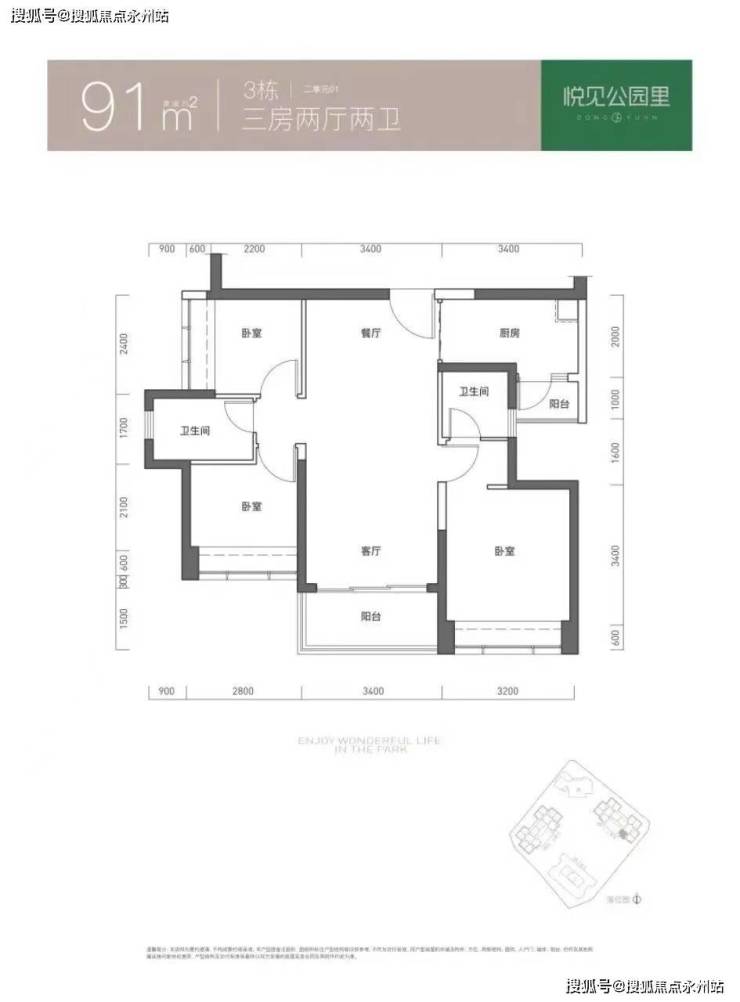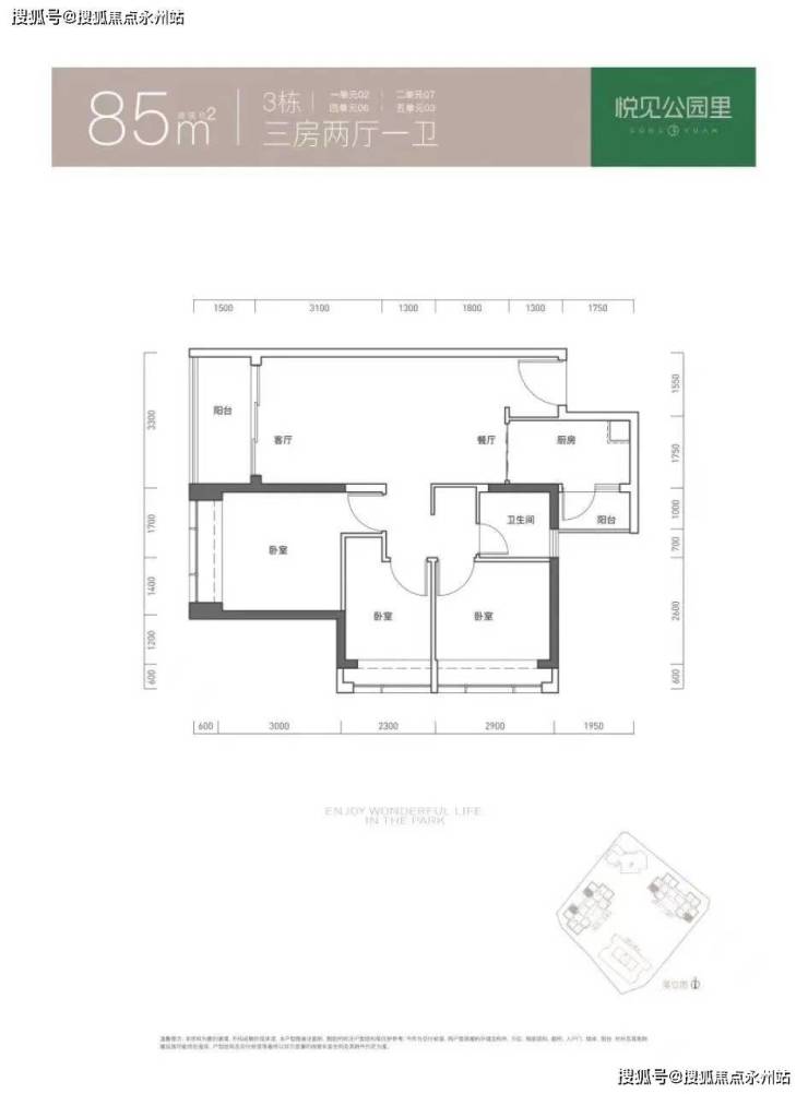 在售户型:85-88㎡3房1卫;91-98㎡3房2卫