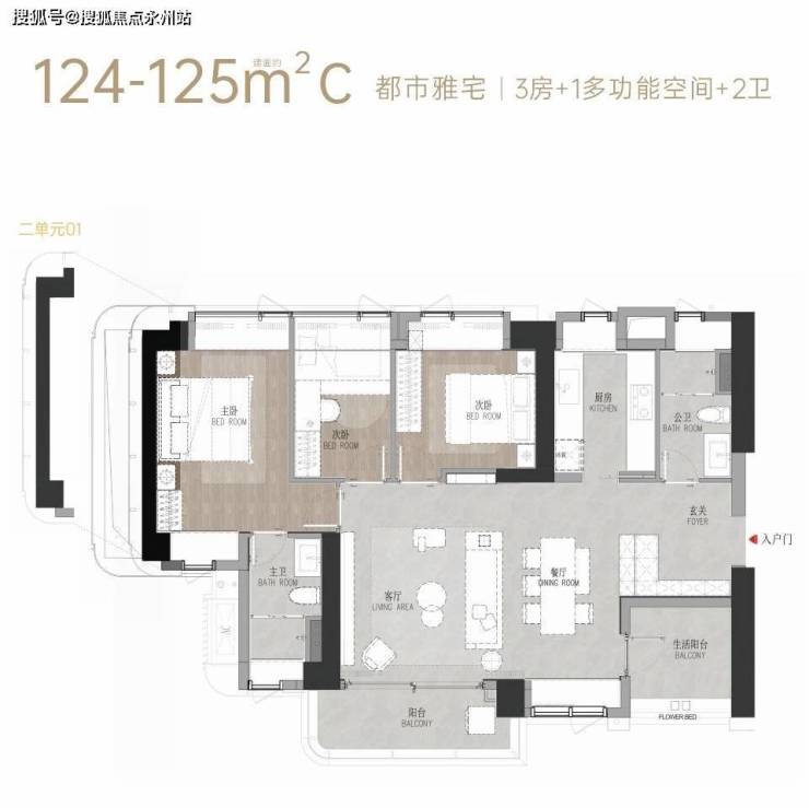 户型:建面约111-125㎡的3-4 房,其中 111㎡为东南朝向城市景观三房,122-125㎡为西北/东西通透的3+1房(部分可看绿地公园)。