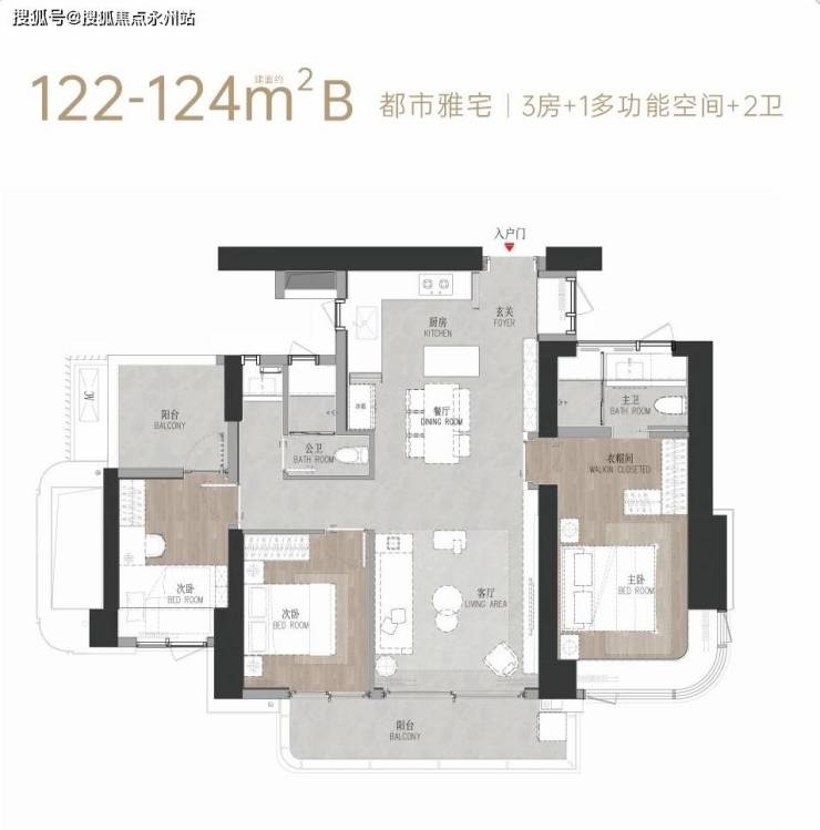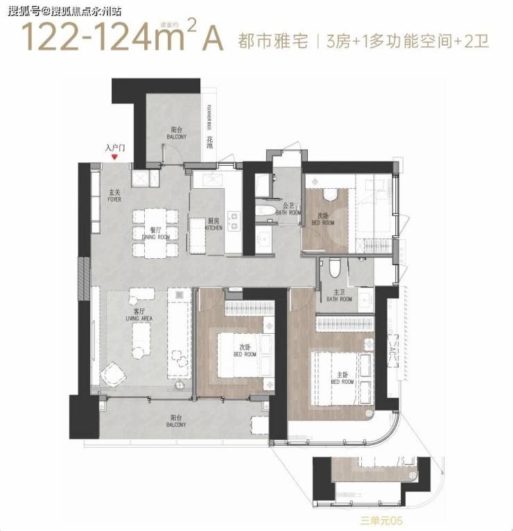 建面约122-125㎡3+1 房两厅两卫(A/B/C户型)