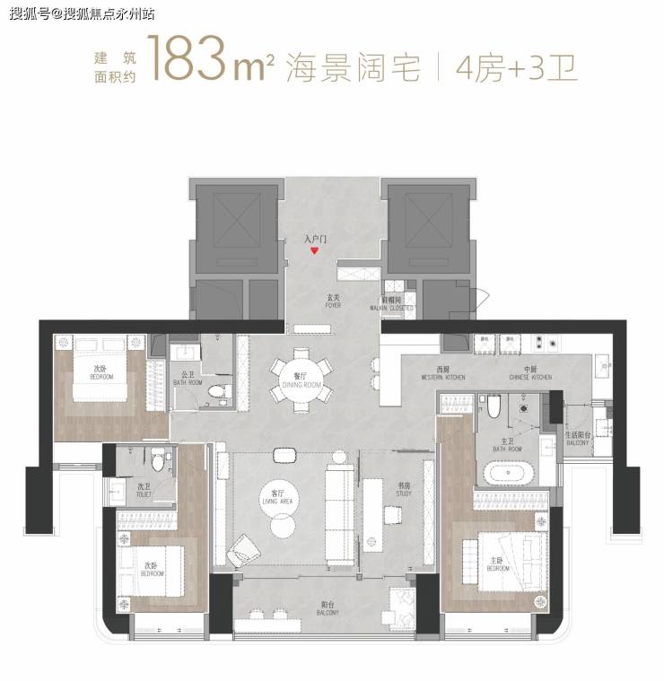 改善级(183-270㎡):强调空间仪式感,如专梯入户、双套房设计,匹配高净值人群对私密与尺度的双重需求。