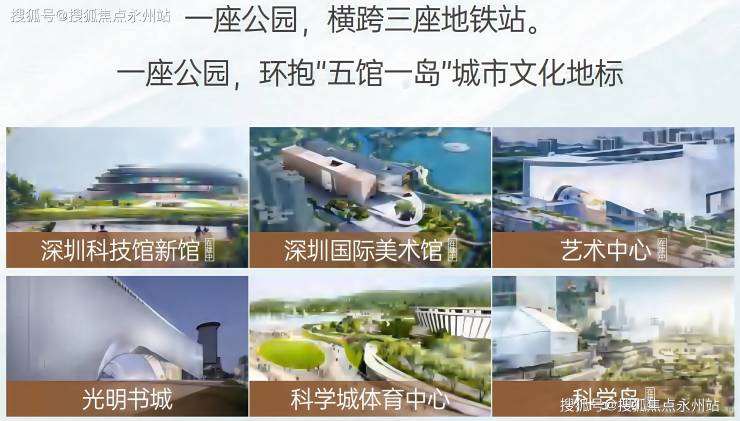 依托科学公园这一城央生态绿地,还分布有深圳科技馆新馆(建设中)、深圳国际美术馆(暂定名,建设中)、艺术中心(建设中)、光明书城、体育馆、科学岛“五馆一岛”城市级文化地标,便捷畅达,轻松享受休闲时光。