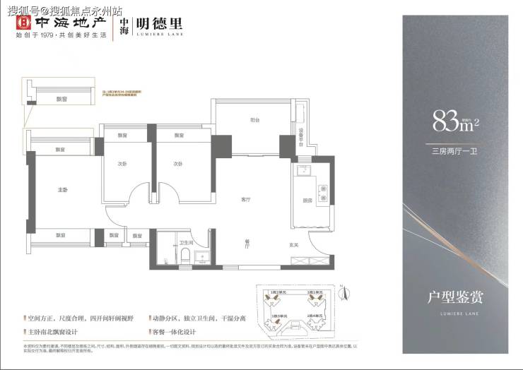 品质美宅:建面约83-113㎡3-4房品智美学住宅,多面宽朝阳,揽清风入怀。