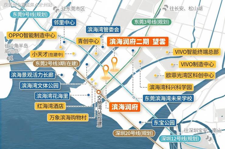 交通枢纽:紧邻东莞地铁2号线三期交椅湾站(在建,预计 2027 年通车),衔接深圳地铁20号线(规划),1 站直达深圳;周边广深沿江高速、深茂铁路(在建)等路网密集,构建大湾区1小时生活圈。