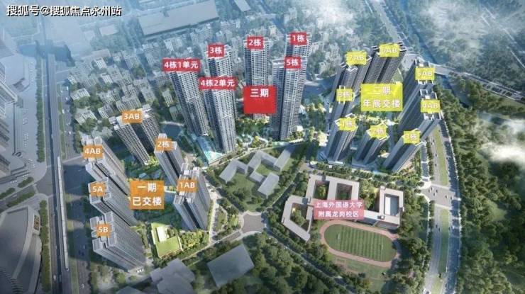 仁恒公园世纪三期地块由6座高层围合而成,其中1座、2座、5座均为总层高45层,3座及4座2单元为总层高44层,4座1单元总层高43层。除了5栋为3梯3户以外,其他5座均为3梯4户。