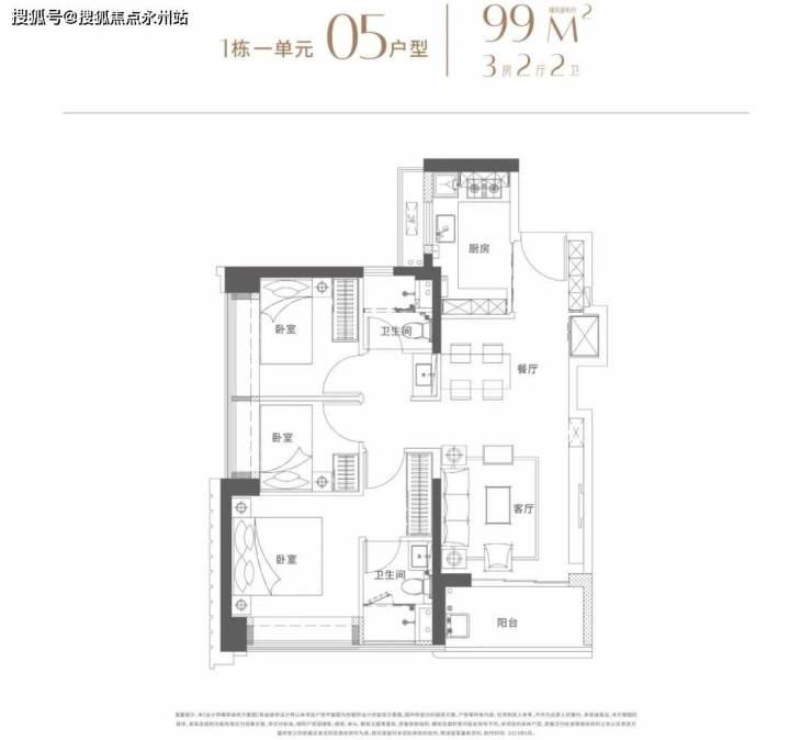 建面96-102平米:3房2厅2卫都是传统的竖厅,动静分区格局。