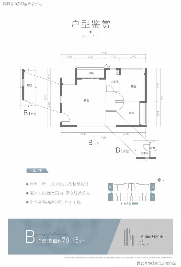 B户型:户型布局方正典雅,彰显格调生活,明厨明卫设计,双飘窗带阳台配备,俯瞰楼下商街繁华,缤纷乐活场景。