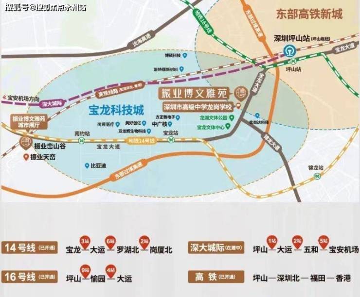 16号线坪山站 :坪山站升级“坪山综合交通枢纽”,16号线、高铁、深大城际(宝安机场——坪山,在建)三轨交汇;