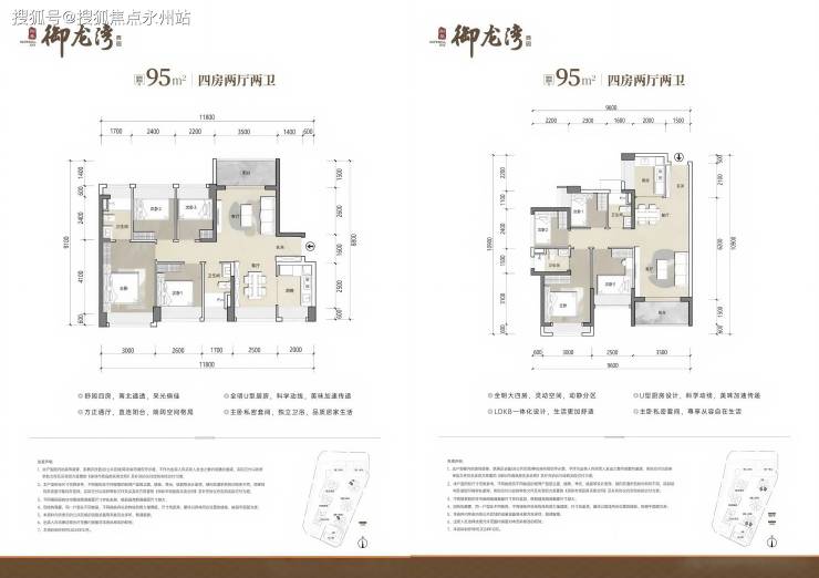 建面约 95㎡四房:区域稀缺小户型四房,餐客厅一体化设计,空间利用率高。