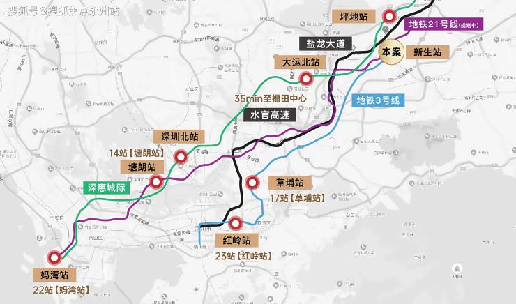 3号地铁东延线最近的“坪西站”以及“新生站”距离都在1.3公里左右,还有深惠城际“坪地站”,可以乘坐3号线坐到低碳城站换乘,步行约300米,该线路未来1站到龙城、2站大运北、6站到深圳北、7站到西丽、10站速达前海。深惠城际预计2026年开通,时速达160公里,可快速通达各区。