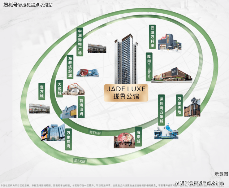 约3-5KM范围内:聚集南山前海山姆、云城万科里、万象前海、万象天地、海岸城、深圳湾万象城等高端及旗舰商业;以及宝中海雅缤纷城、大悦城、中洲购物广场等潮流商业MALL。