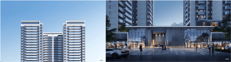 项目简约典雅立面,宝中奢雅封面采用铝板、塔冠铝合金格栅,塑造国际化现代典雅外立面;白色、灰色的高级色调搭配,打造秀气挺拔、极具都市感和人文气息的天际线;立面采用大面积玻璃材质,视野通透之余,营造通透轻盈的建筑肌理。