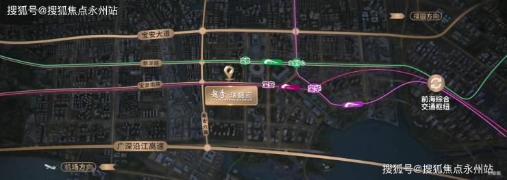 路网:约200米直达宝安主干道新湖路,毗邻广深沿江高速,湾区重要快速主干道,距高速入口约2公里;海滨大道(直连南山滨海大道、福田滨河大道,建设中)、妈湾跨海通道。