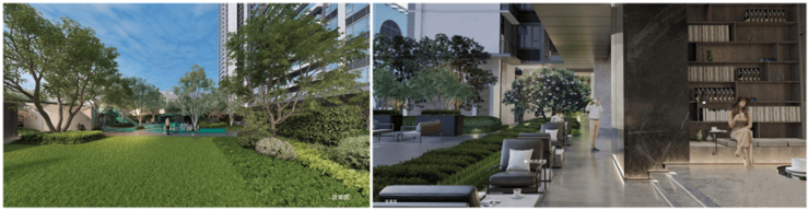 高定绿奢艺境,高阶静谧场域超大中庭园林,诗意盛景如诗;最大约73米阔尺楼间距,尊享大尺度中心花园,丈量无限绿意;风雨连廊、社区会客厅、有氧吧台、中央草坪、秘境花园、特色水景等绿奢场景,勾勒全龄段、可亲近的城市都市秘境。