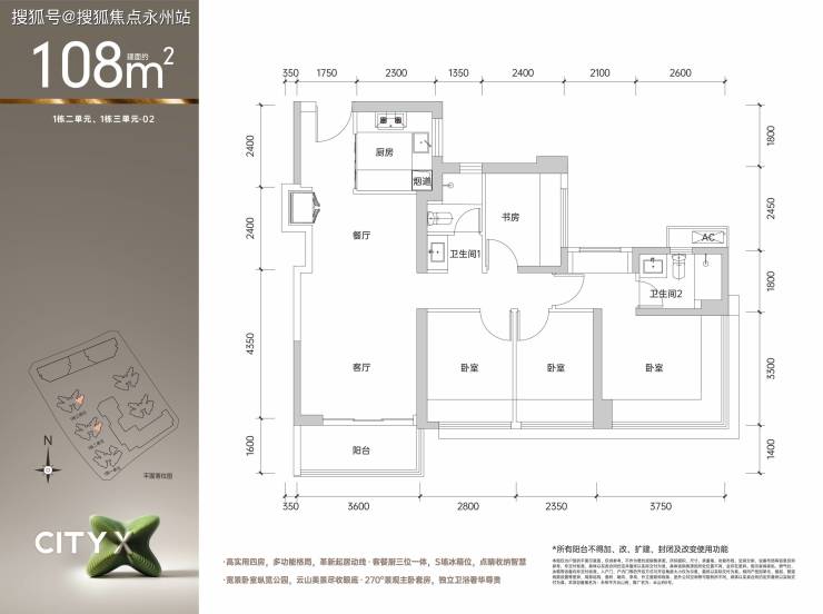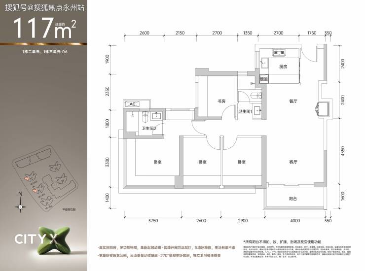 适合人群:追求舒适性的三口之家,东南/西南朝向户型性价比更高。