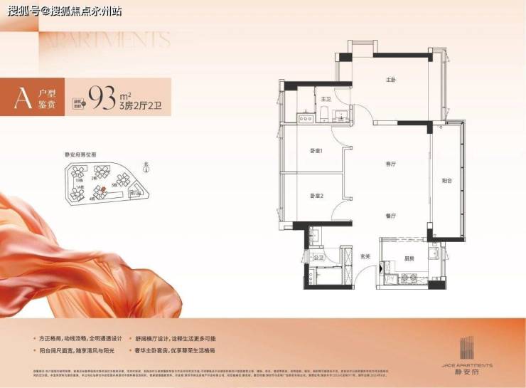 93㎡的3房2厅2卫横厅户型,折后总价在260-270万/套。