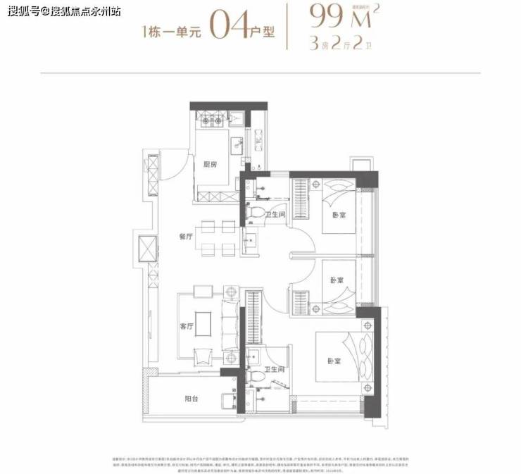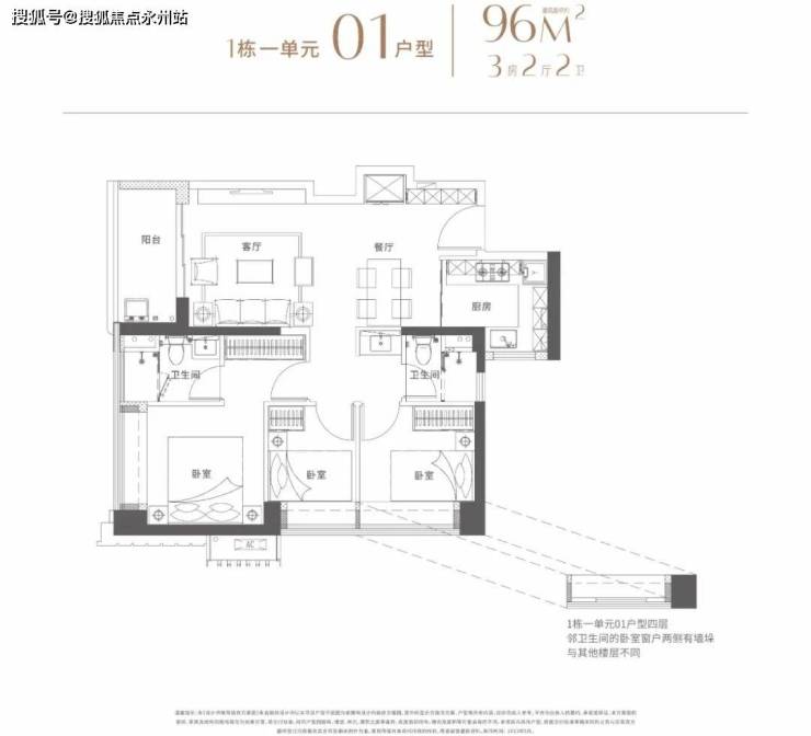 建面96-102平米:3房2厅2卫都是传统的竖厅,动静分区格局。
